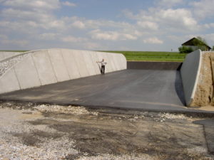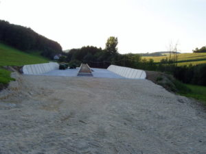 Vorteile: Gutes Verdichten durch schräge Wände und optimale Abdichtung durch Einlegen von Randfolien gut möglich